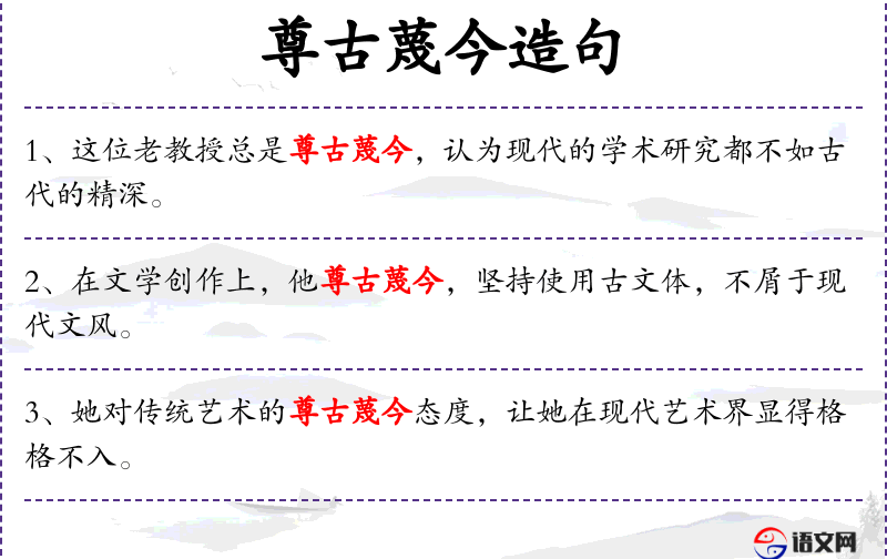 - 尊古:尊重古代的事物或文化