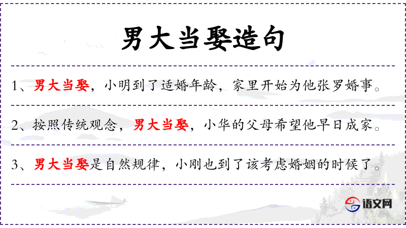 3. 【男大当娶】 - 指男子成年后要娶亲成家。