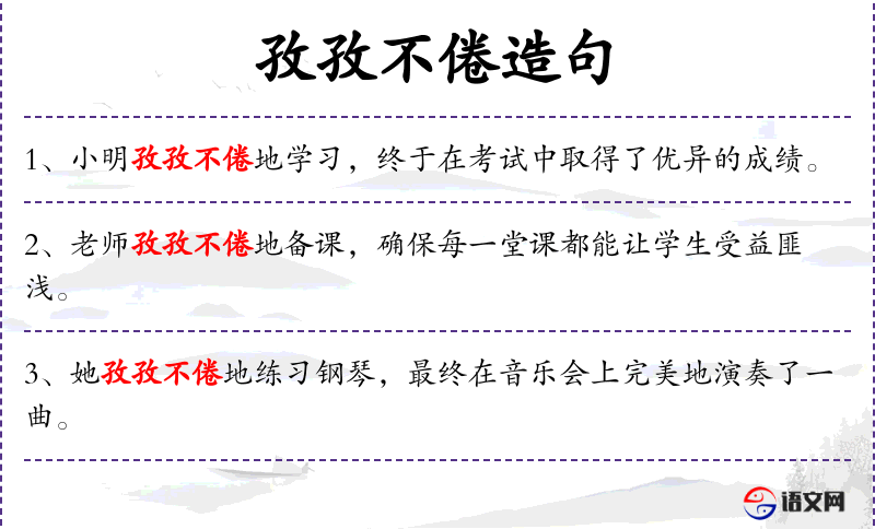 - 孜孜不倦:勤奋、不懈、刻苦