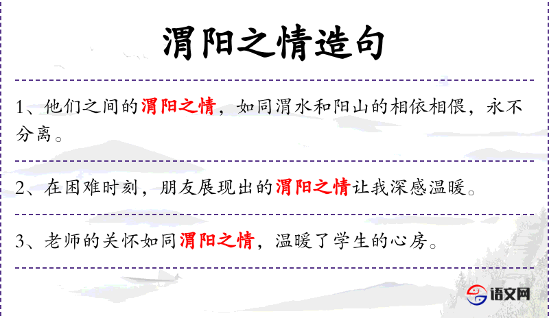4. 【渭阳之情】 - 渭阳:渭水的北边。传说秦康公送其舅重耳返晋,直到渭水之北。指甥舅间的情谊。