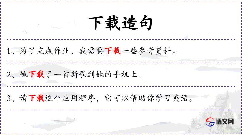 1. 【下载】 从互联网或其他计算机上获取信息并装入到某台计算机或其他电子装置上(跟“上传”相对)。