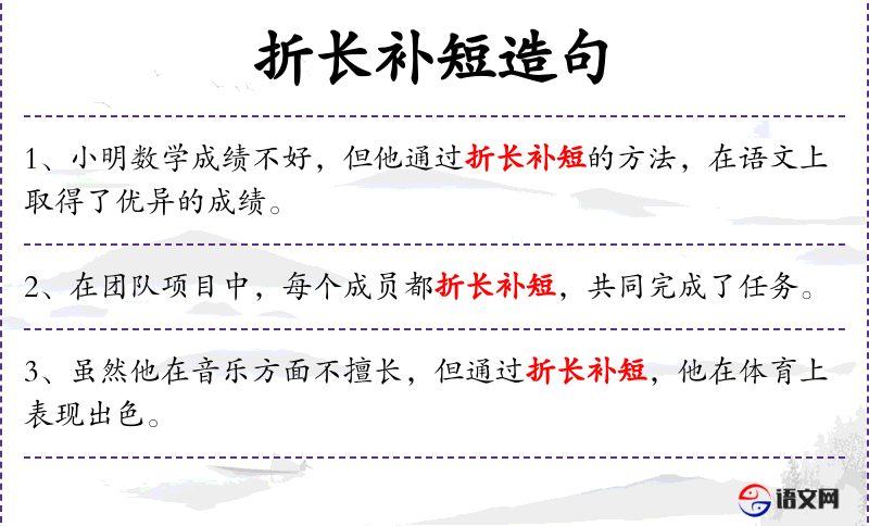 - 折长补短:这是一个成语,意思是利用自己的长处弥补短处,或者通过巧妙的方法解决问题。