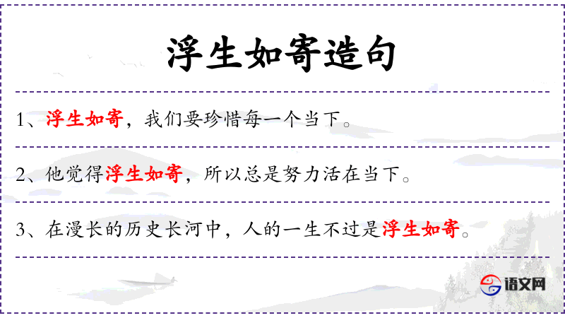 1. 【浮生如寄】 - 浮生:指人生变化不定。人生短暂虚浮无定,如同寄居世间。