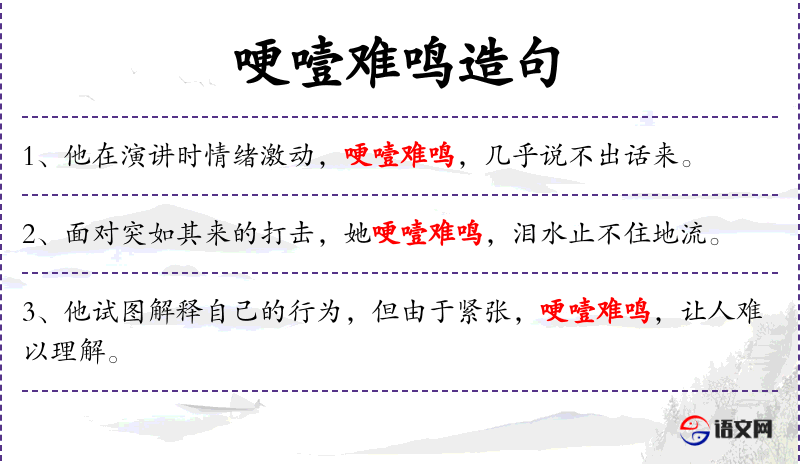 - 哽噎难鸣:形容因情绪激动或痛苦而说不出话来。