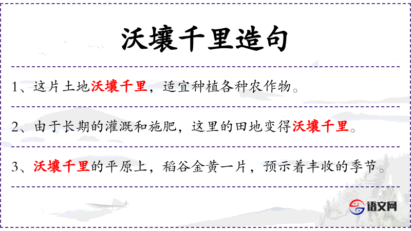 5. 【沃壤千里】 形容肥沃的土地极为宽广。