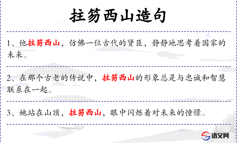 - 拄笏西山:这个成语源自**古代,比喻有远大的志向或视野。