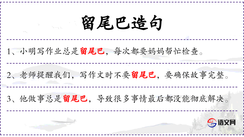 6. 【留尾巴】 比喻事情没有干完,还有问题。