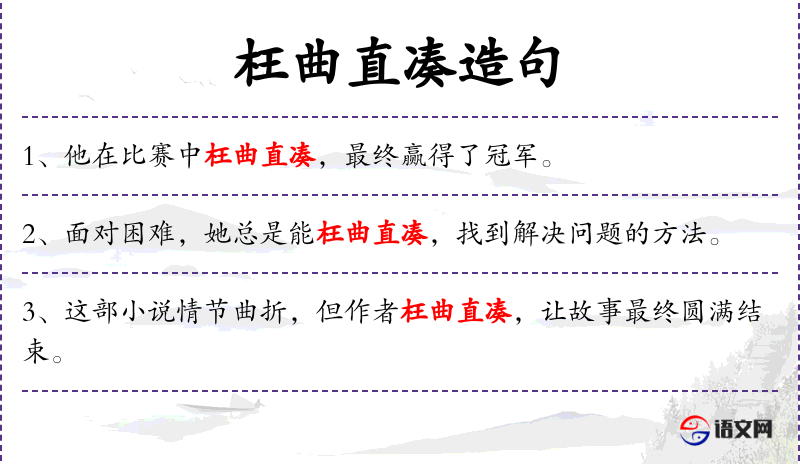 6. 【枉曲直凑】 指在弯曲的路上却笔直地往前走。形容人笨拙死板而不知变通。