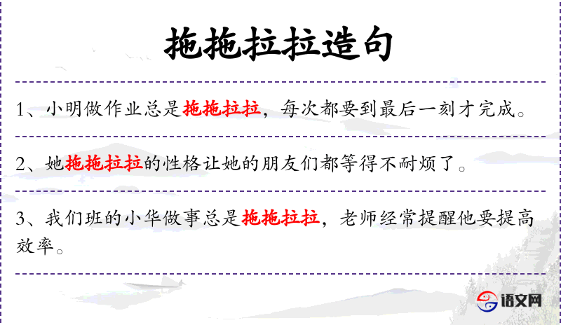 句子:“老师要求我们按时交作业,不要拖拖拉拉。”