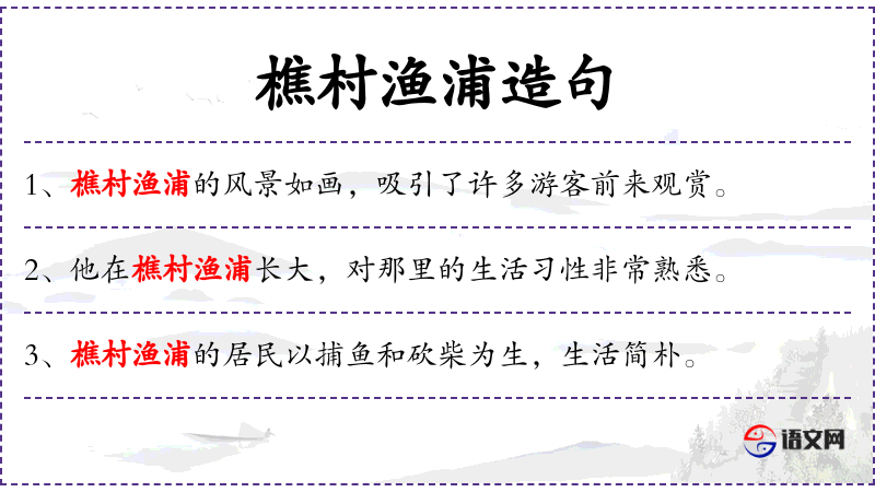 樵村渔浦造句列表