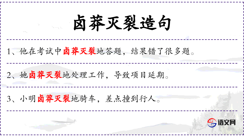 - 卤莽灭裂:鲁莽、粗心、不顾后果