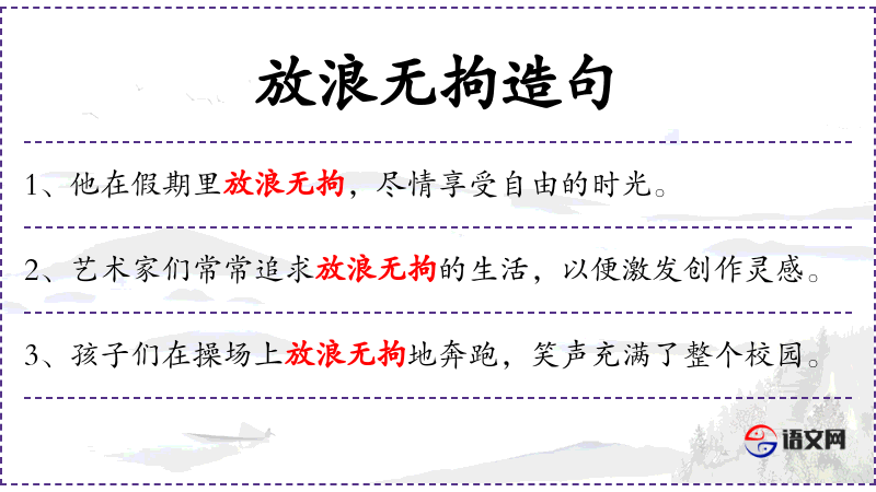 - 放浪无拘:这个词组在**文化中强调自由和不受拘束,与西方文化中的“carefree”或“free-spirited”相似。