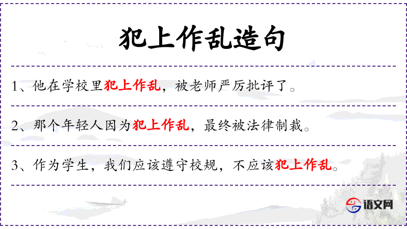 2. 【犯上作乱】 犯:干犯。封建统治者指人民的反抗、起义。