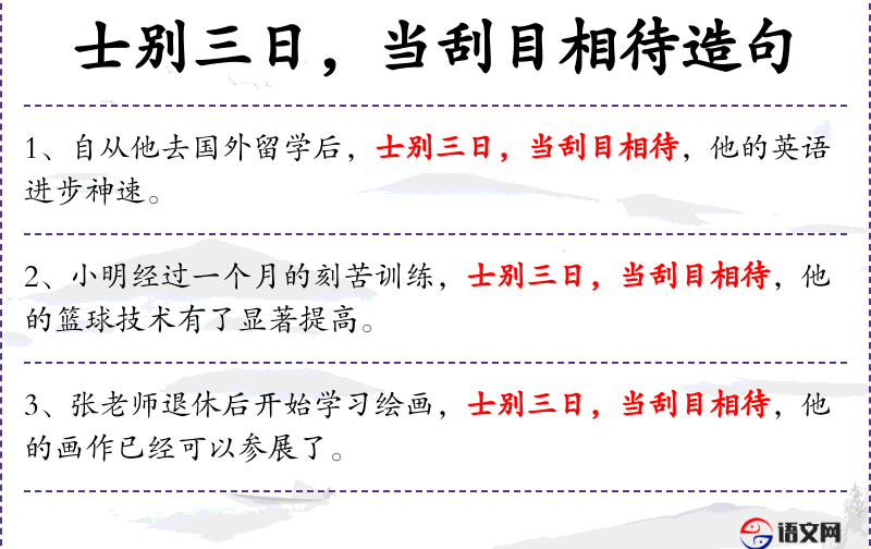 成语“士别三日,当刮目相待”源自古代,强调人的变化可能非常迅速,应该用新的眼光看待。这个成语在文化中常用来形容人的进步或变化。