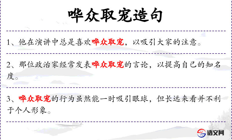 - 哗众取宠:指通过夸张或引人注目的手段吸引公众注意。