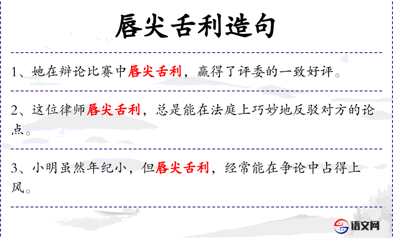 - 唇尖舌利:形容人说话机智、口才好,能够巧妙地表达自己的观点。