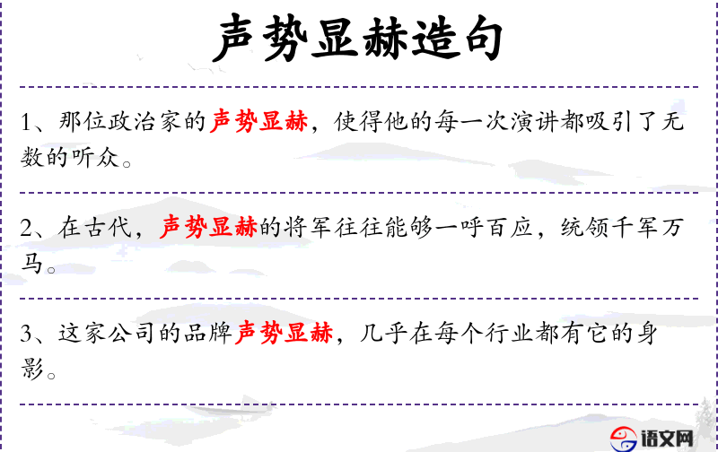 - 声势显赫:形容词短语,表示名声很大,影响广泛。