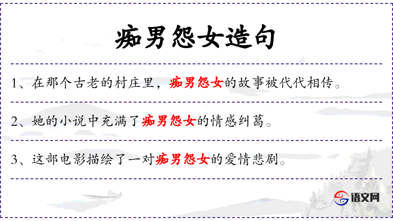 1. 【痴男怨女】 - 旧指爱恋极深但感情上得不到满足的男女。