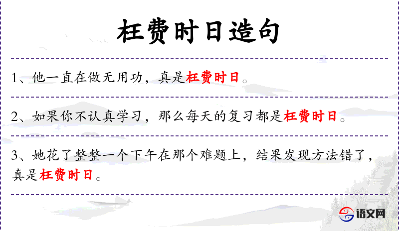 4. 【枉费时日】 枉:白白地;费:浪费;时、日:时间。白白地浪费时光。