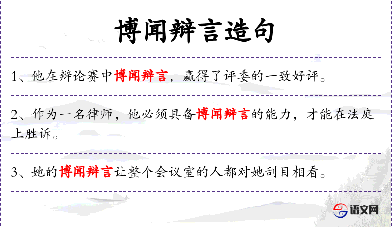 博闻辩言:形容一个人知识渊博且善于辩论,能够用有力的言辞说服他人。