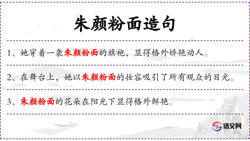 5. 【朱颜粉面】 - 粉:白色。红颜白面。指涂脂傅粉的女子。