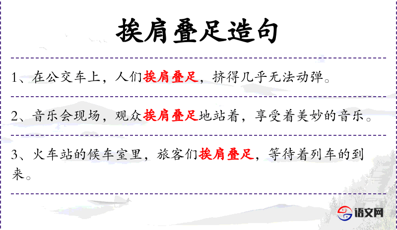 “挨肩叠足”这个成语反映了中文中对拥挤场景的形象描述,体现了中文表达的生动性和形象性。这种描述在描述人群密集的场景时非常常见。