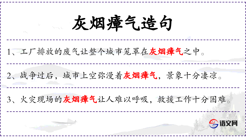 3. 【灰烟瘴气】 - 比喻污浊。