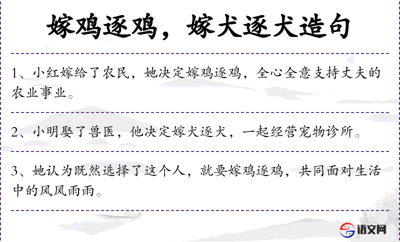 - 嫁犬逐犬:这个成语反映了**传统文化中对婚姻忠诚和夫妻相互支持的期望。