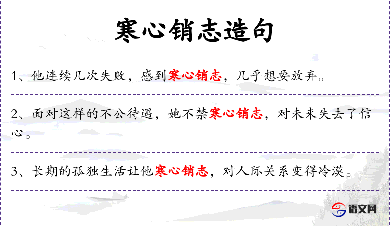 - 寒心销志:形容因失望或打击而心灰意冷,失去斗志,同义词有“心灰意冷”、“灰心丧气”。