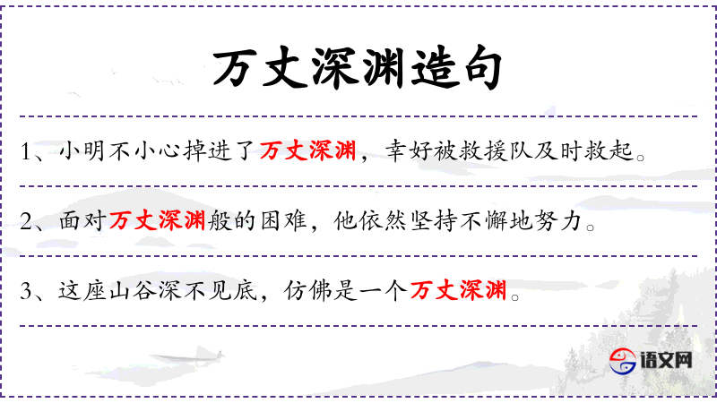 1. 【万丈深渊】 - 渊:深潭。很深的水潭。比喻十分不利的处境。