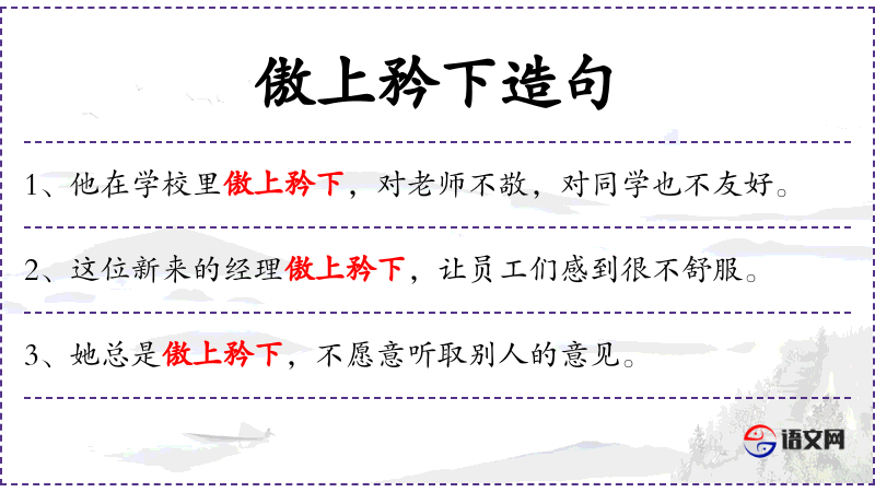 - 傲上矜下:成语,形容对人态度傲慢,对下级或不如自己的人则显得自负。