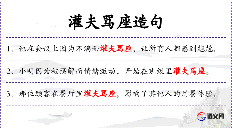 1. 【灌夫骂座】 - 灌夫:西汉著名将领。指灌夫酒后骂人泄愤。形容为人刚直敢言。