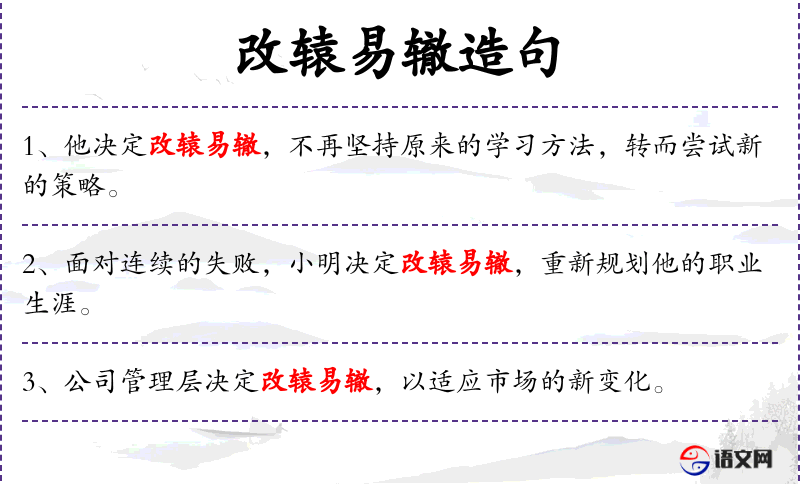 “改辕易辙”是一个成语,意味着改变原来的方向或计划。这个成语反映了中华文化中对于变通和适应的重视。