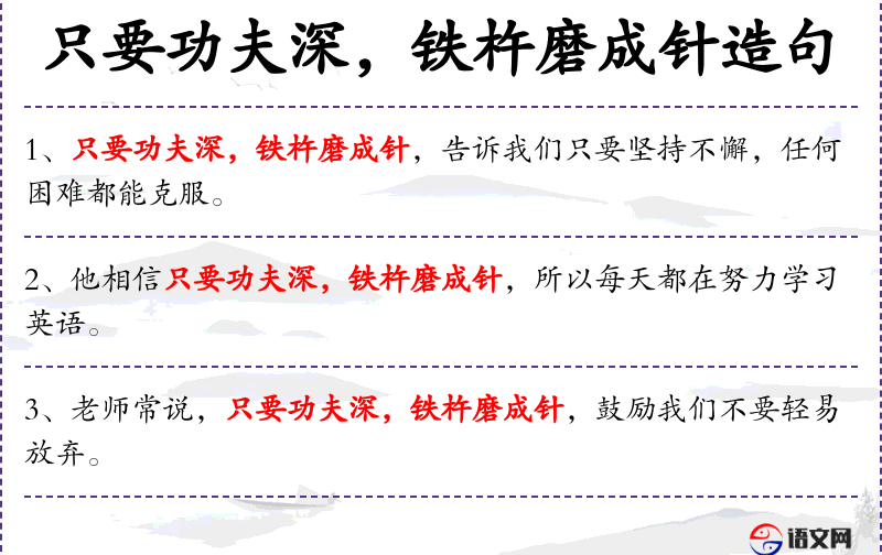 - 成语:铁杵磨成针,源自**古代故事,强调恒心和毅力的重要性。