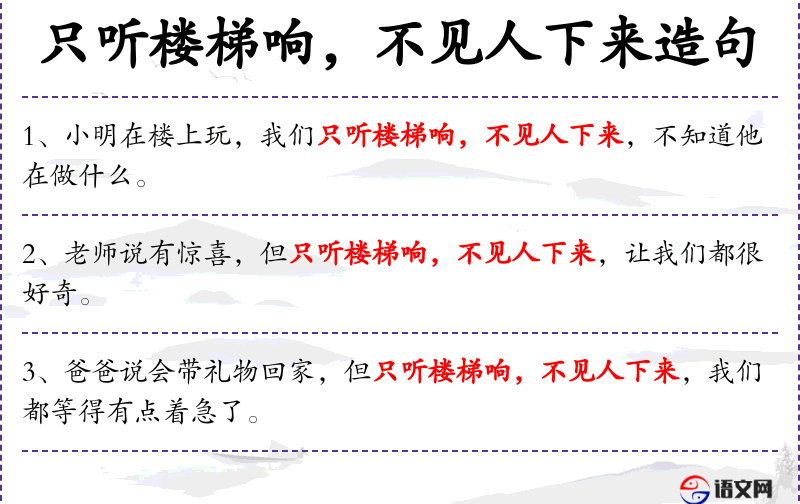 - 只听楼梯响:表示只听到声音,但不见人出现。