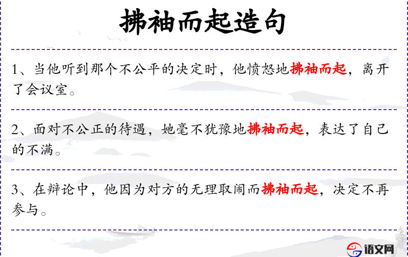 - 拂袖而起:形象地描述一个人愤怒地离开的动作。