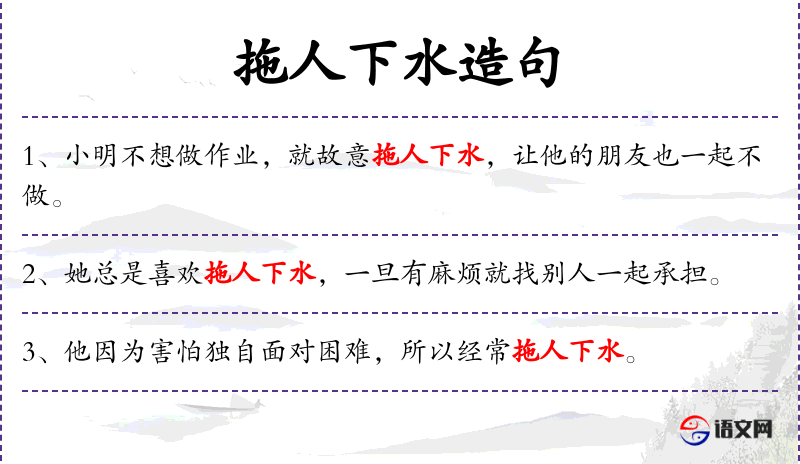 - 拖人下水:比喻让别人也陷入困境
