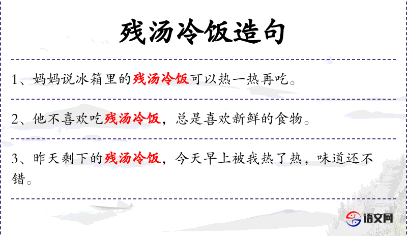 4. 【残汤冷饭】 - 残:剩下。残剩下来的汤水和饭菜。