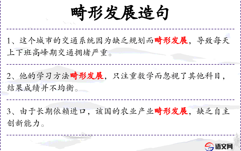 1. 【畸形发展】 畸:奇,不正常。按照不正常的轨迹发展。