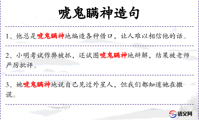 - 唬鬼瞒神:形容说话夸张、不真实,带有欺骗性质。
