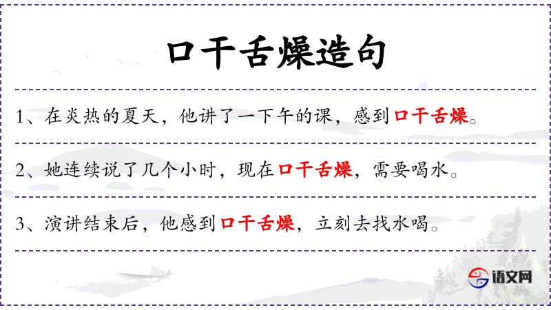 - 课堂上,老师讲了很多,学生们看到他口干舌燥,便纷纷递上水杯。
