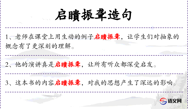 “启聩振聋”这个成语源自**传统文化,用来形容启发愚昧或唤醒沉睡的人,使其明白。这个成语的使用体现了中文表达的丰富性和文化内涵。