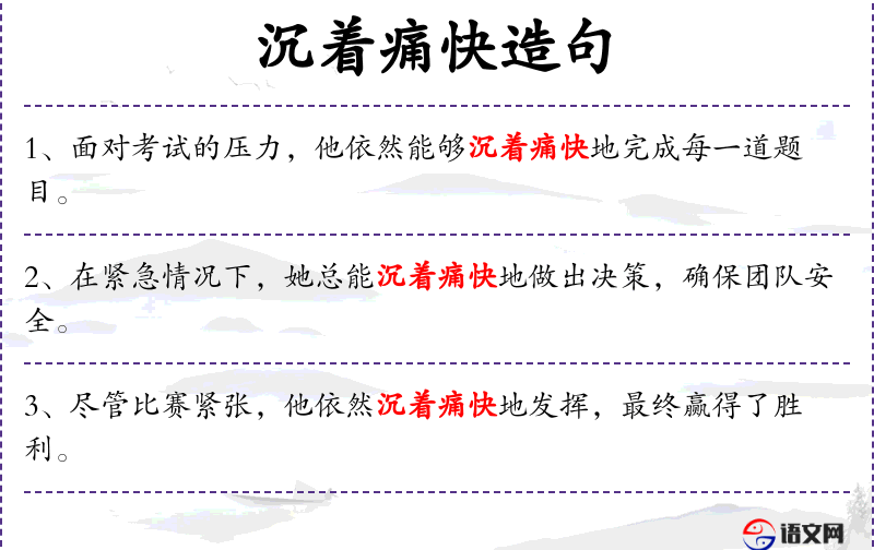 1. 【沉着痛快】 指书法、文章深厚稳健,直率而无拘泥之态。