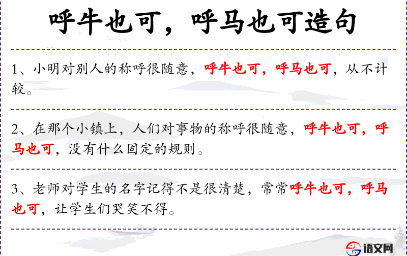 - 呼牛也可,呼马也可:并列结构,表示无论怎么称呼都可以接受。