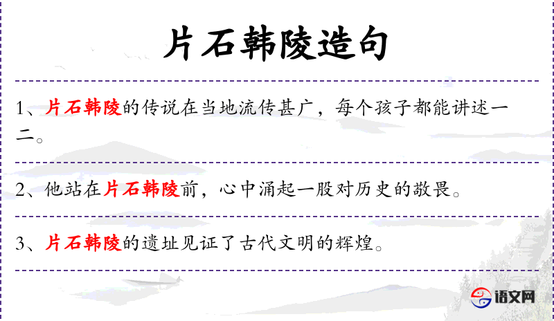 3. 【片石韩陵】 - 比喻少见的好文章。
