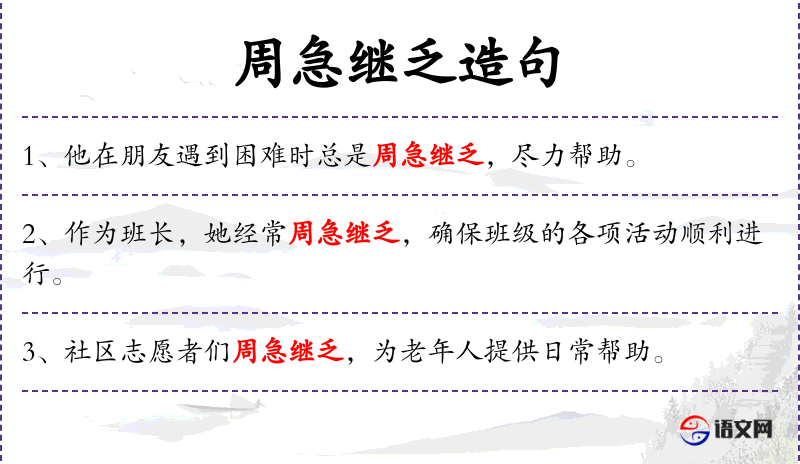 - 相关成语:周急继乏,体现老师的责任心和不懈努力。
