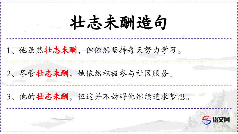 - 文化意义:在**文化中,“壮志未酬”常与坚持和毅力联系在一起,强调面对困难时的积极态度。