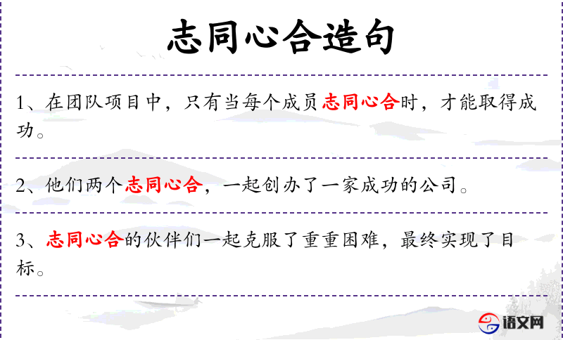 - 志同心合:形容人们心意一致,共同努力。