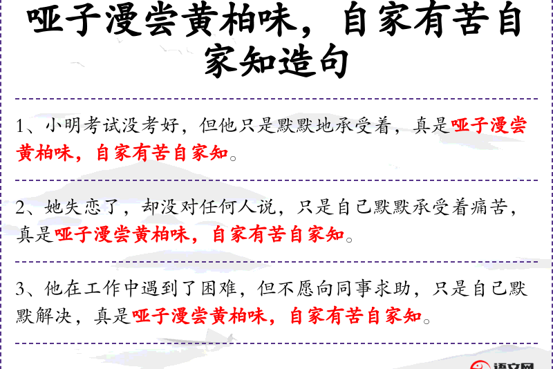 - 英文:He encountered difficulties at work but was unwilling to ask his colleagues for help, choosing instead to solve them silently. Truly, it's like a mute tasting the bitterness of phellodendron, knowing one's own suffering.