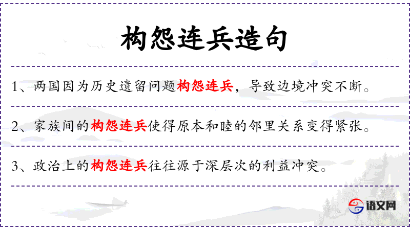 2. 【构怨连兵】 - 构怨:结怨;连兵:交战。因结怨而发生战争。